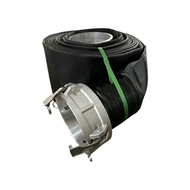 Tubo piatto per miniere da 8 pollici con connettori Storz, tubo piatto per carichi pesanti per drenaggio ad alta pressione nel settore minerario. Dispone di attacchi Storz a connessione rapida e spazio di archiviazione compatto.